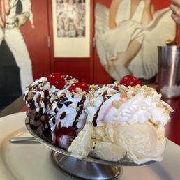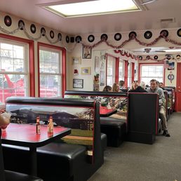 Very cute classic old diner atmosphere. The burgers are generous in size. We all got a different burger on the menu and were all happy with our choices. They have fun names for each burger too. The milkshakes and malt shakes are delicious. The servers are always attentive and do a good job and are friendly. Parking is right in front, but sometimes it can get busy.